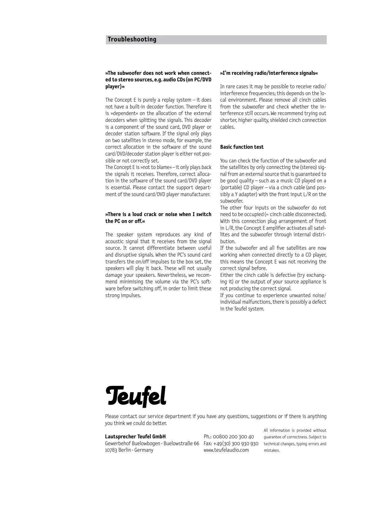 Please contact our service department if you have any questions, suggestions or if there is anything