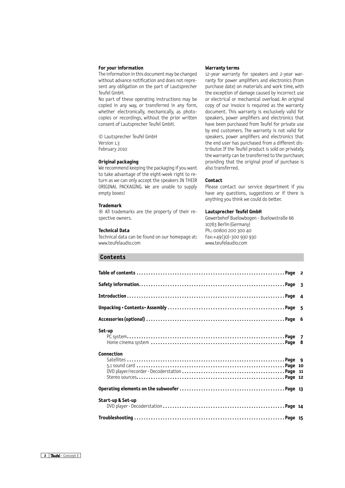 Operating elements on the subwoofer . . . . . . . . . . . . . . . . . . . . . . . . . . . . . . . . . . . . . . . . . . . . Page 13