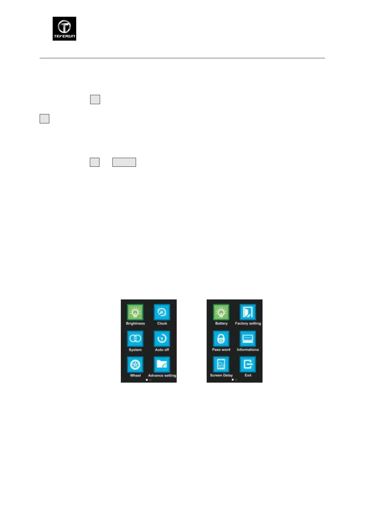 8.1 Brightness : Press M button to enter the setting menu. Adjusting the brightness 1-5 by