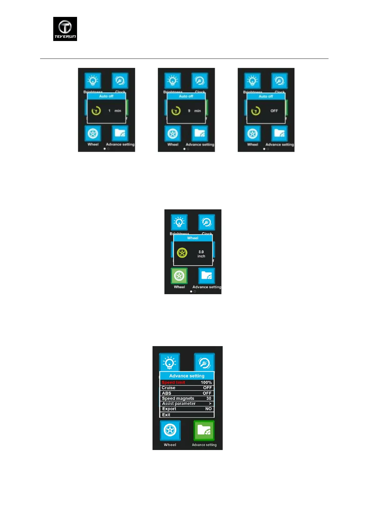 vary from 8 to 14 inch. Wrong wheel diameter selection can lead to abnormal speed. Press M