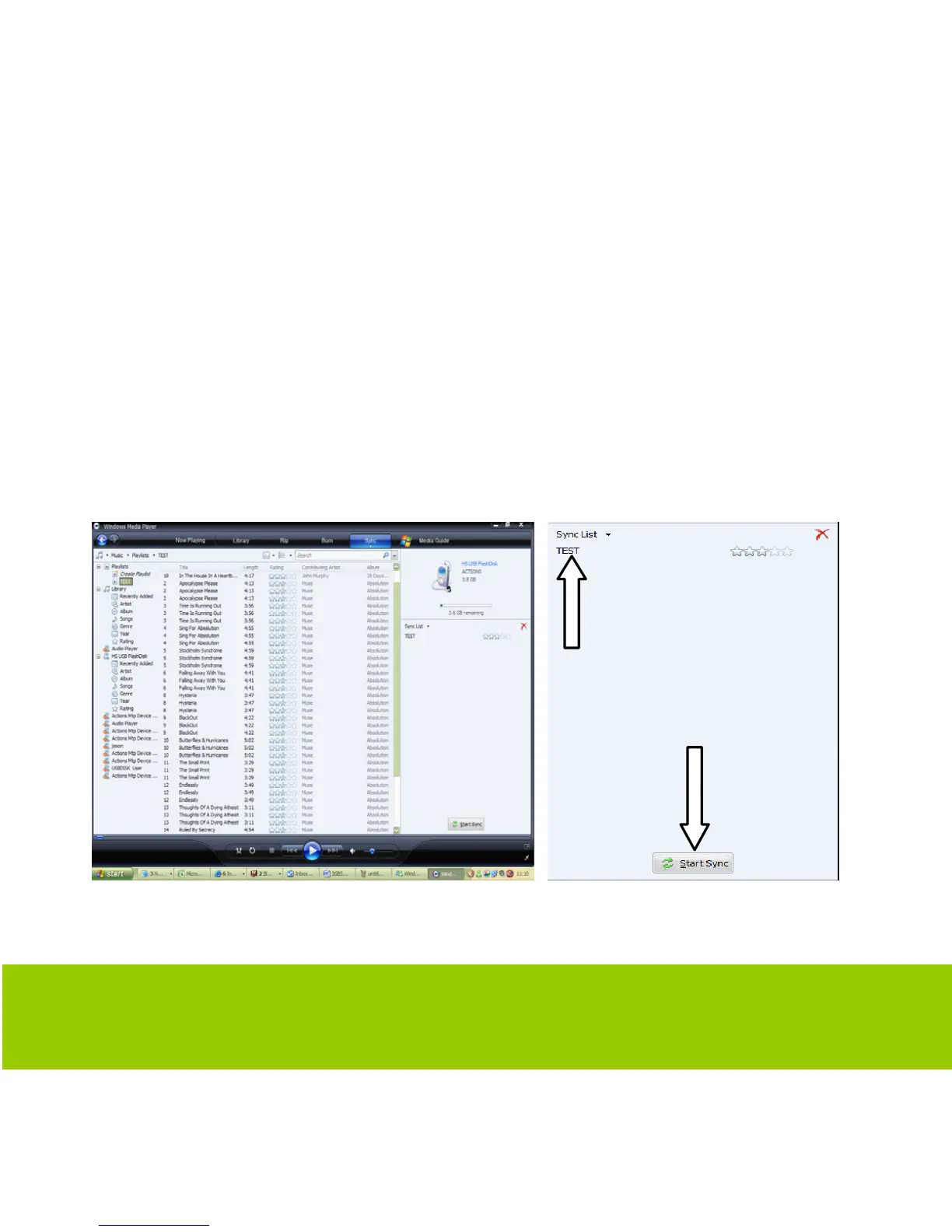 SYNC button you will need to press to begin syncing the playlist to
