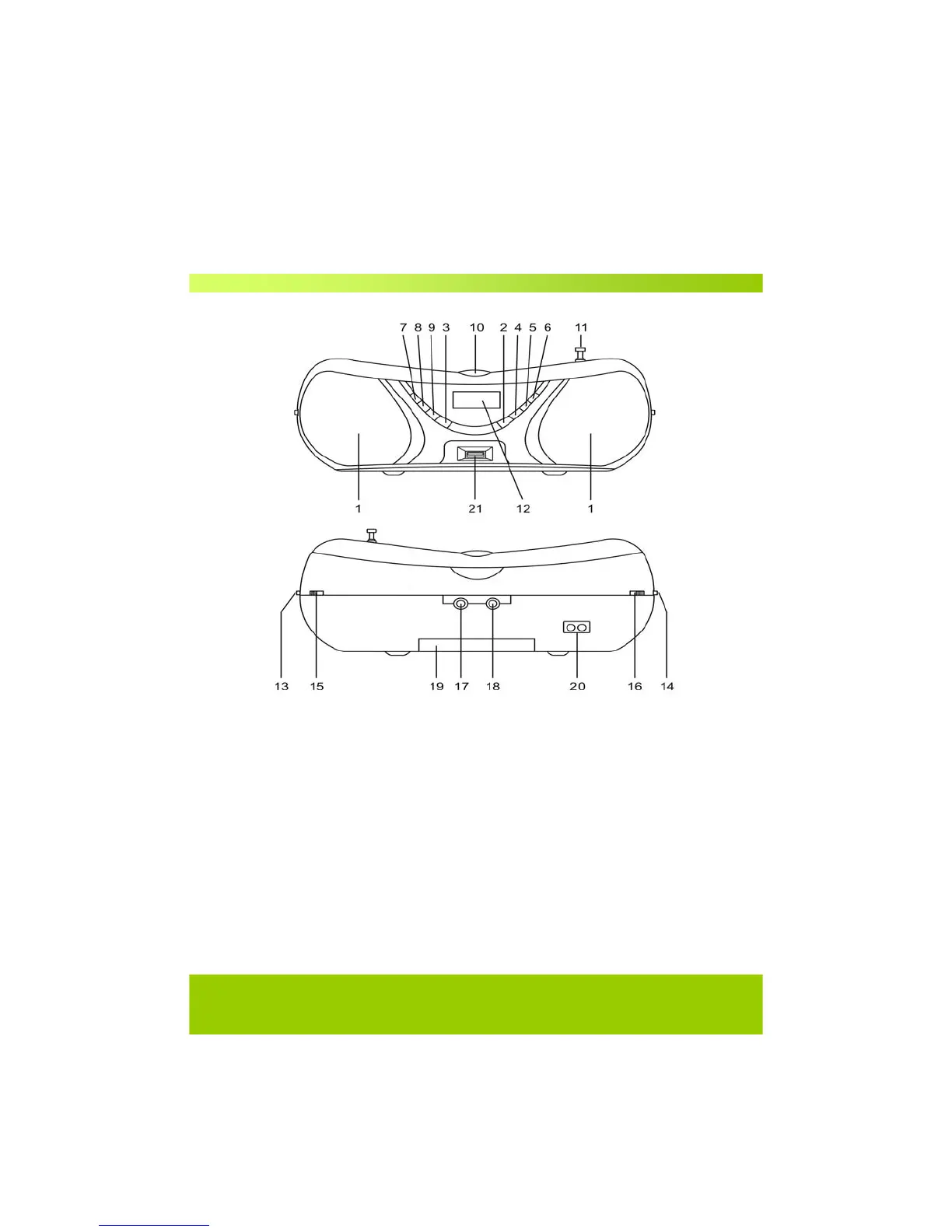 8. CD/USB Button 18. Aux-In Jack