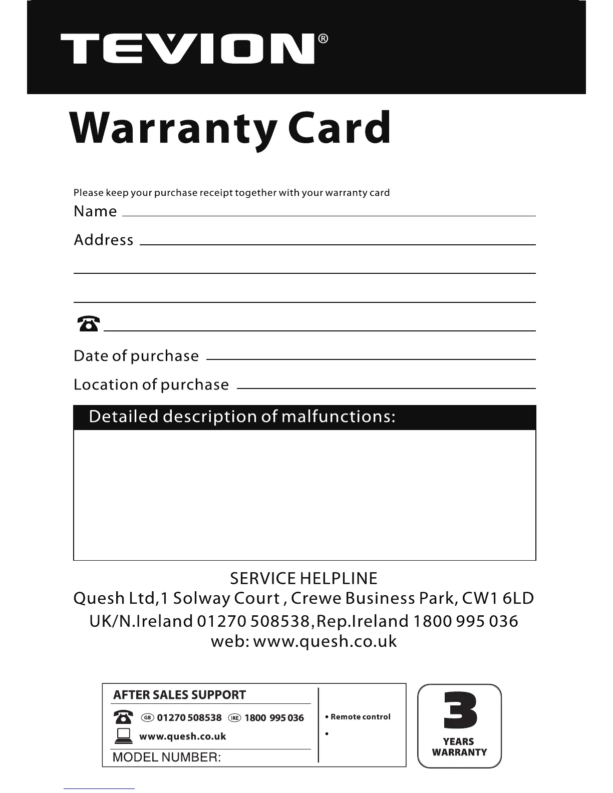 Tevion 55484 - Repair and Refurbished Goods or Parts Notice