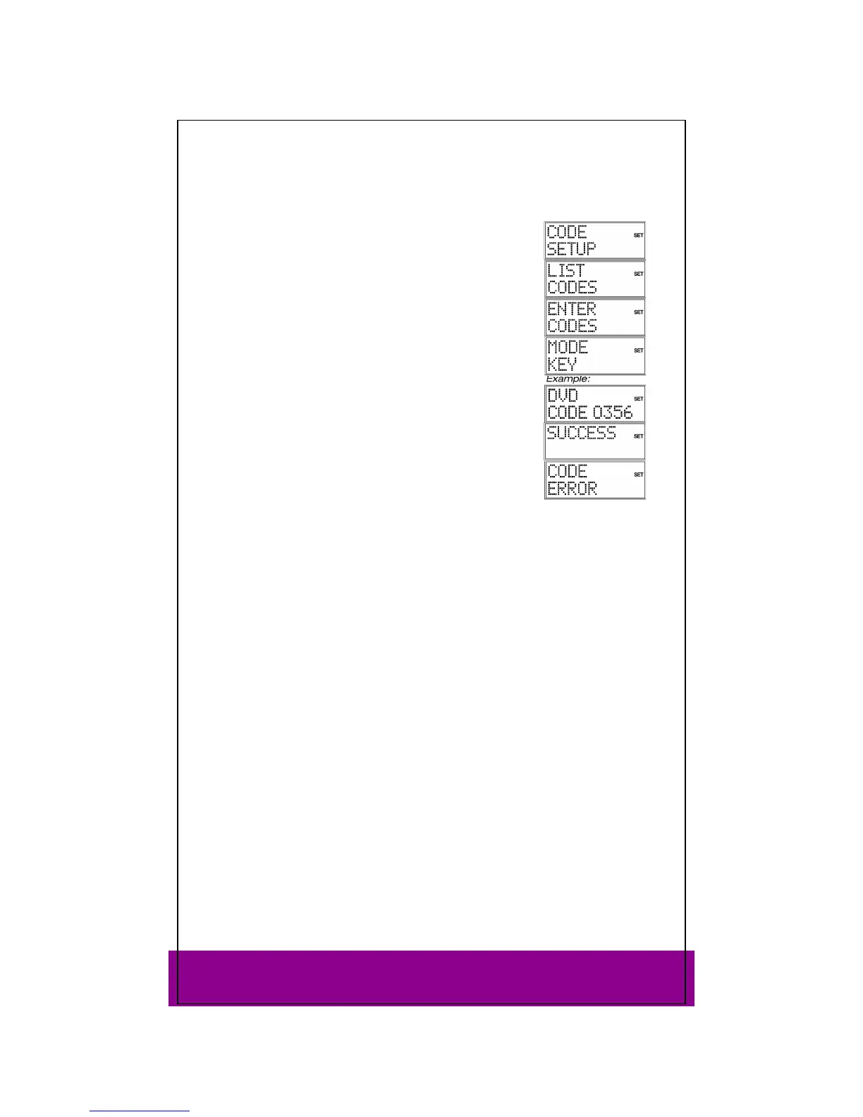 CODE SETUP appears.