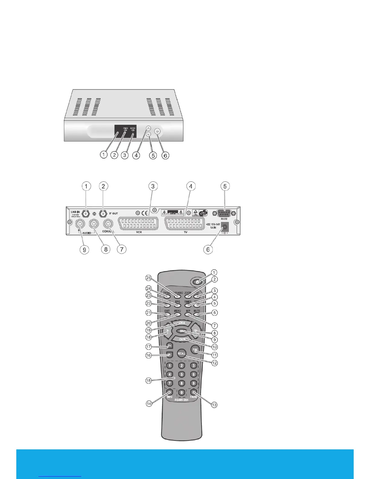 Tevion DIGITAL MINI SATELLITE SYSTEM - Equipment Overview; Front Side of the Receiver; Rear Side of the Receiver; Remote Control Layout