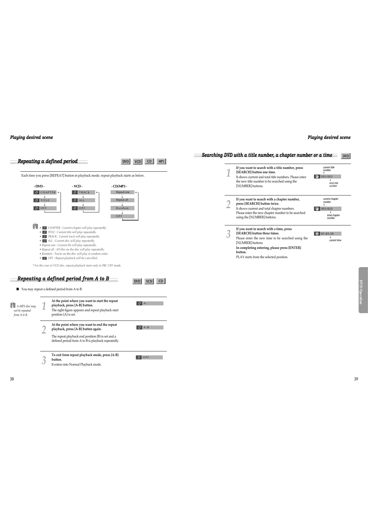 * For the case of VCD disc, repeat playback starts only in PBC OFF mode.