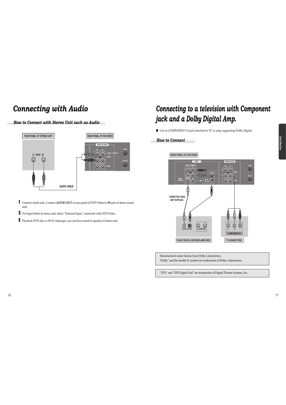 ¡ Connect Audio jack. Connect AUDIO OUT in rear panel of DVD-Video to IN jack of stereo sound