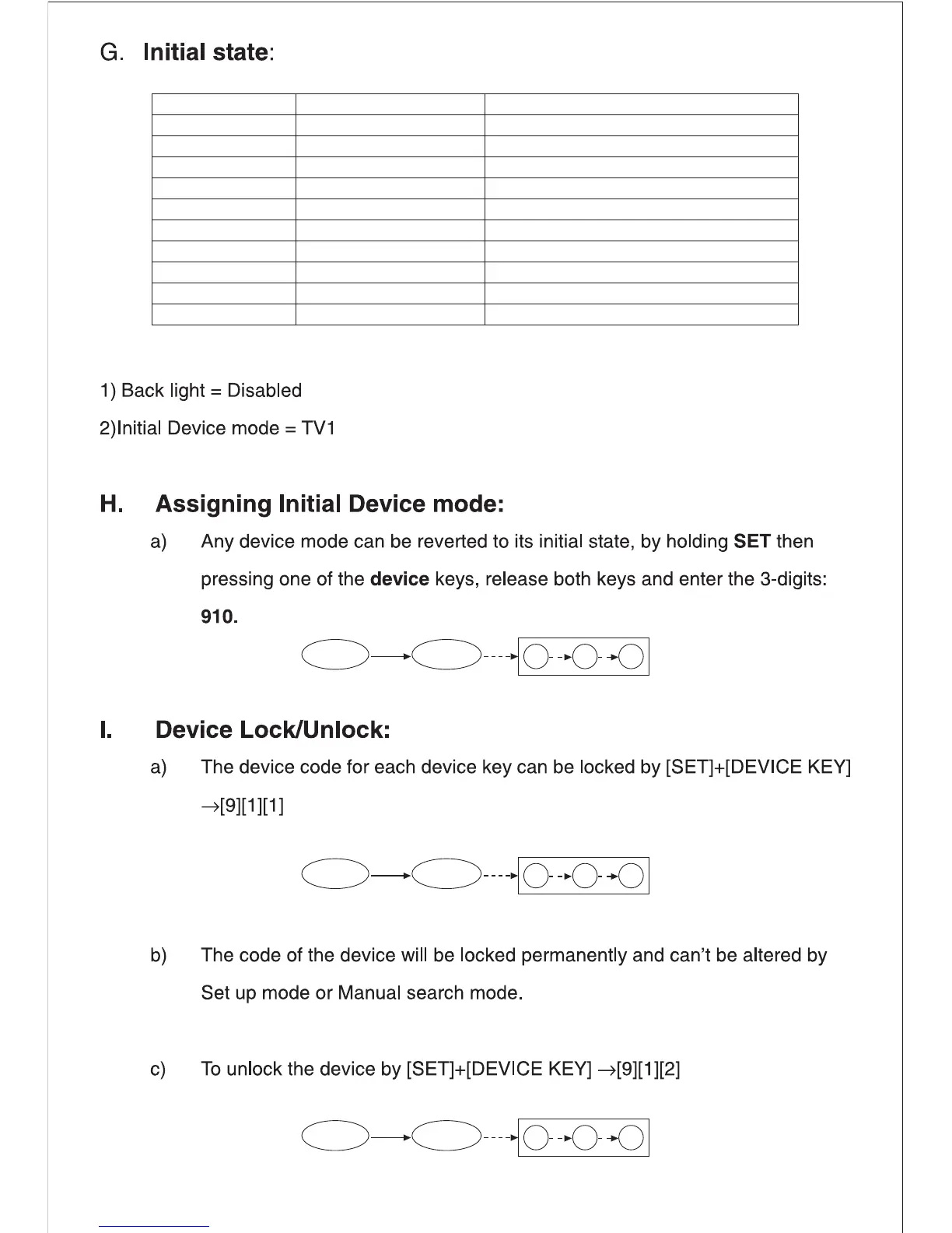 Tevion URCT-48B - G. Initial State; Initial State Details; H. Assigning Initial Device Mode; Assigning Initial Device Mode