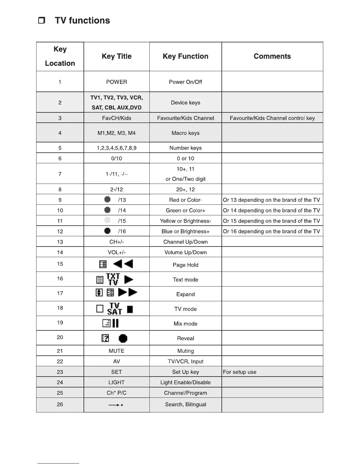 Tevion URCT-48B - TV Functions