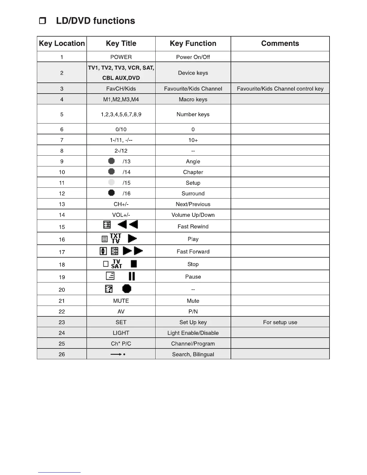 Tevion URCT-48B - LD;DVD Functions