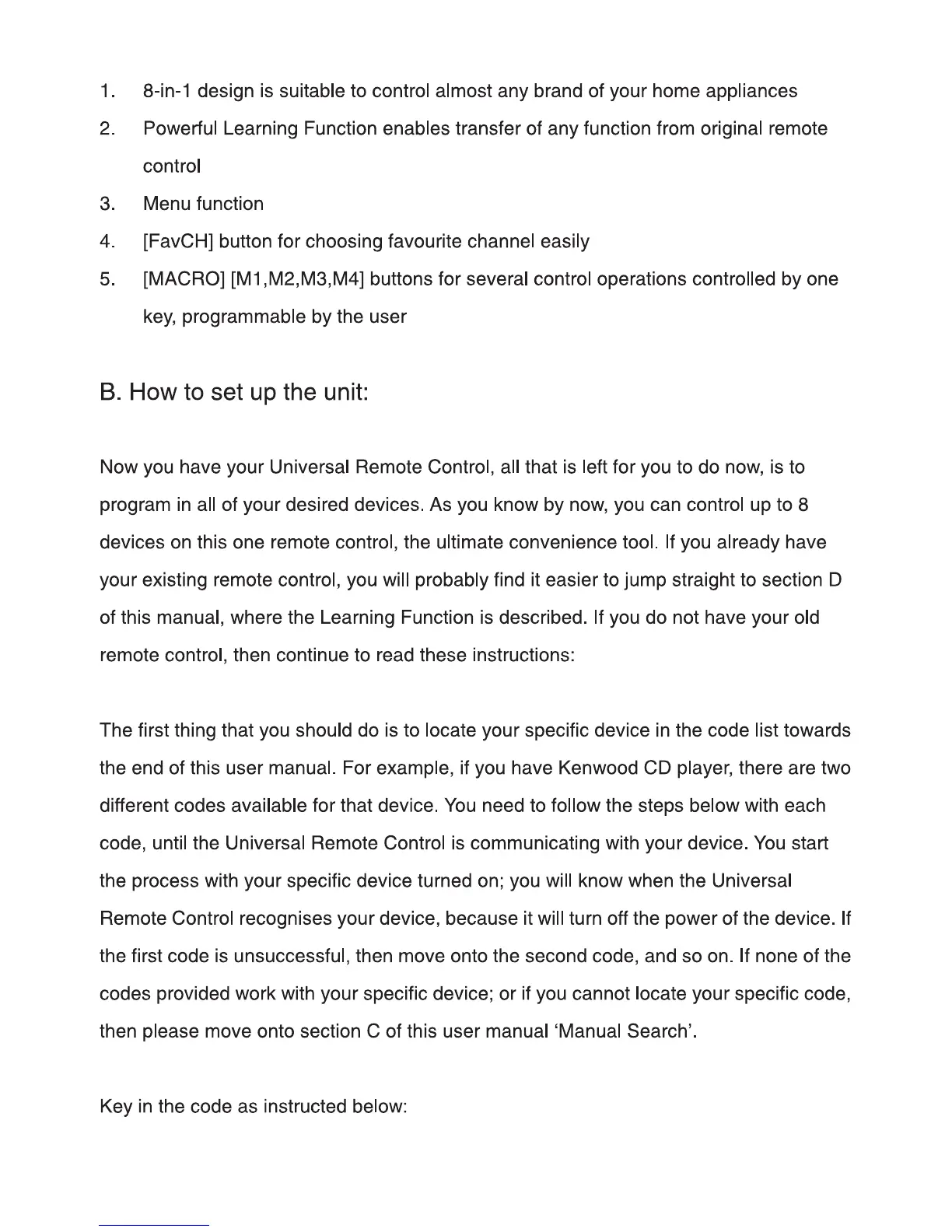 Tevion URCT-48B - B. How to Set Up the Unit; Unit Setup Instructions