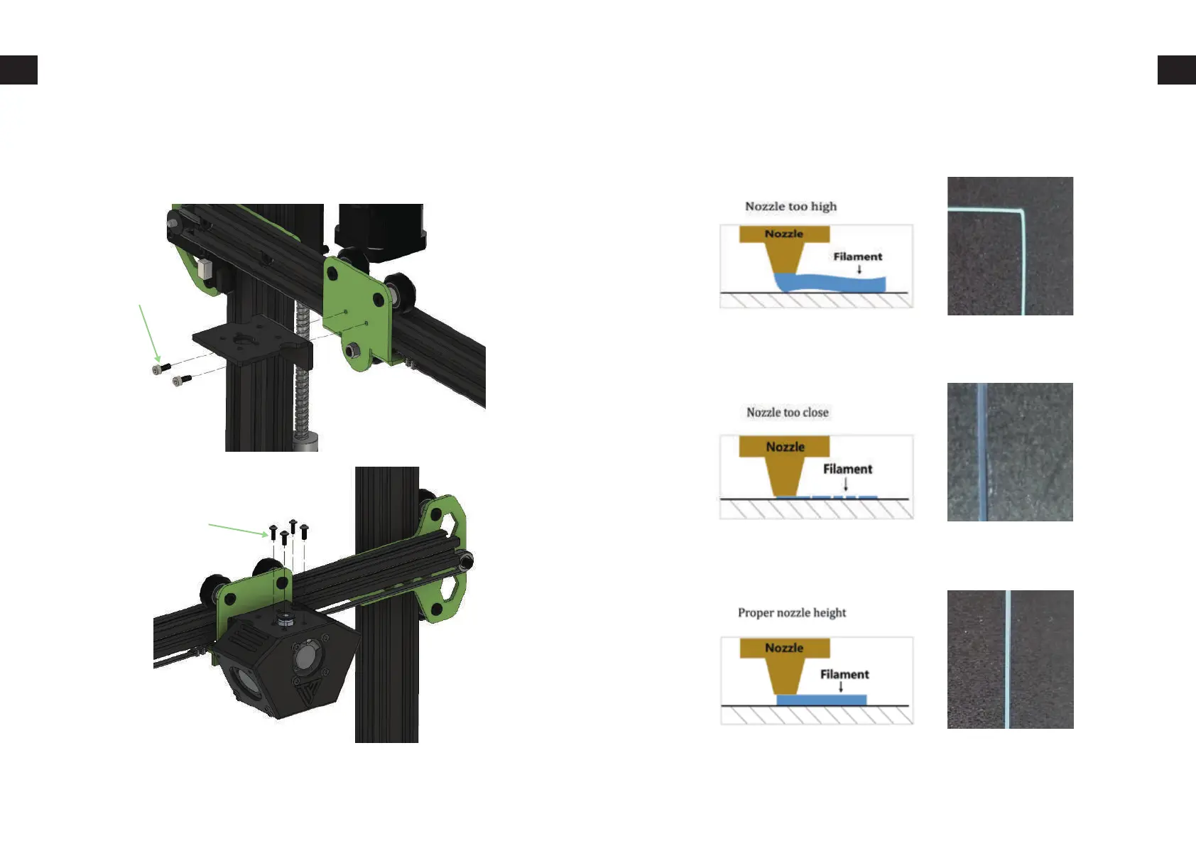 Adjust the wheels locate in 4 corners and make the filament come out