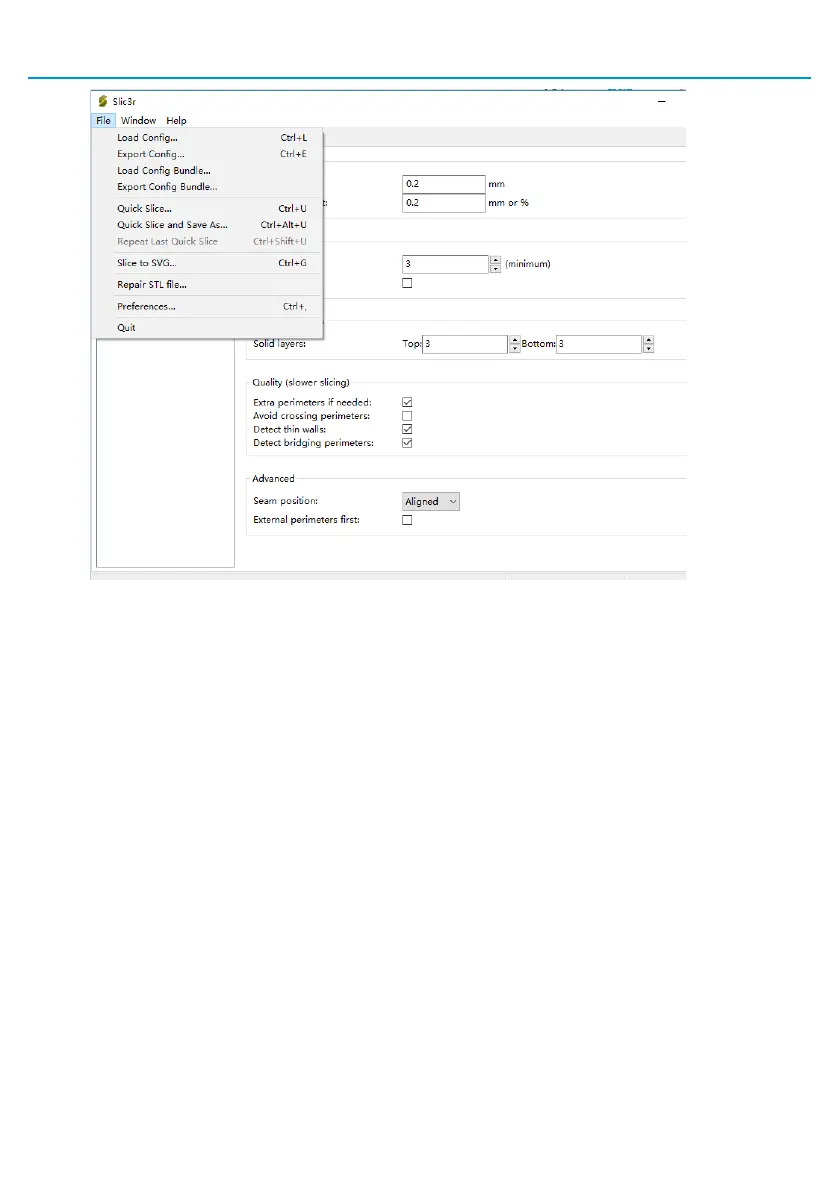 On Slic3r window, go to File -> Load Config. (Loaded setting is for general PLA filament printing).