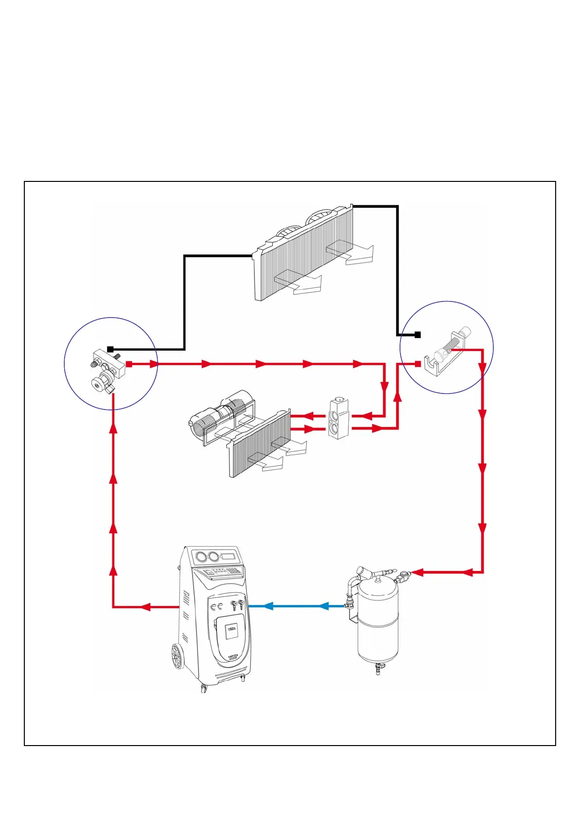 Für die letzte Spülung Anschlüsse am System umkehren. In dieser Situation spülen Sie in