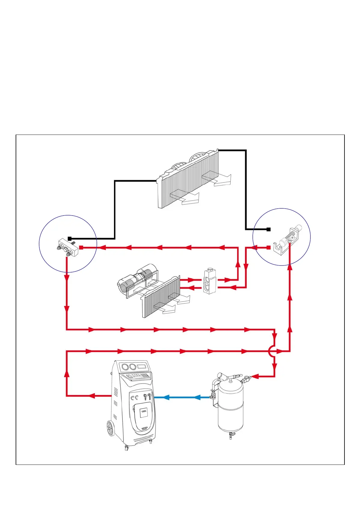 el lavado en dirección al lugar del compresor siguiendo el flujo normal del sistema A/A .
