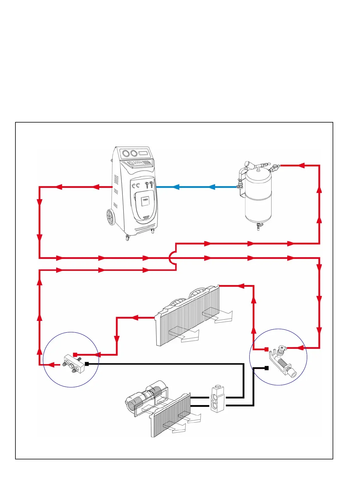 el lavado en dirección al lugar del compresor, contrario al flujo normal del sistema A/A .