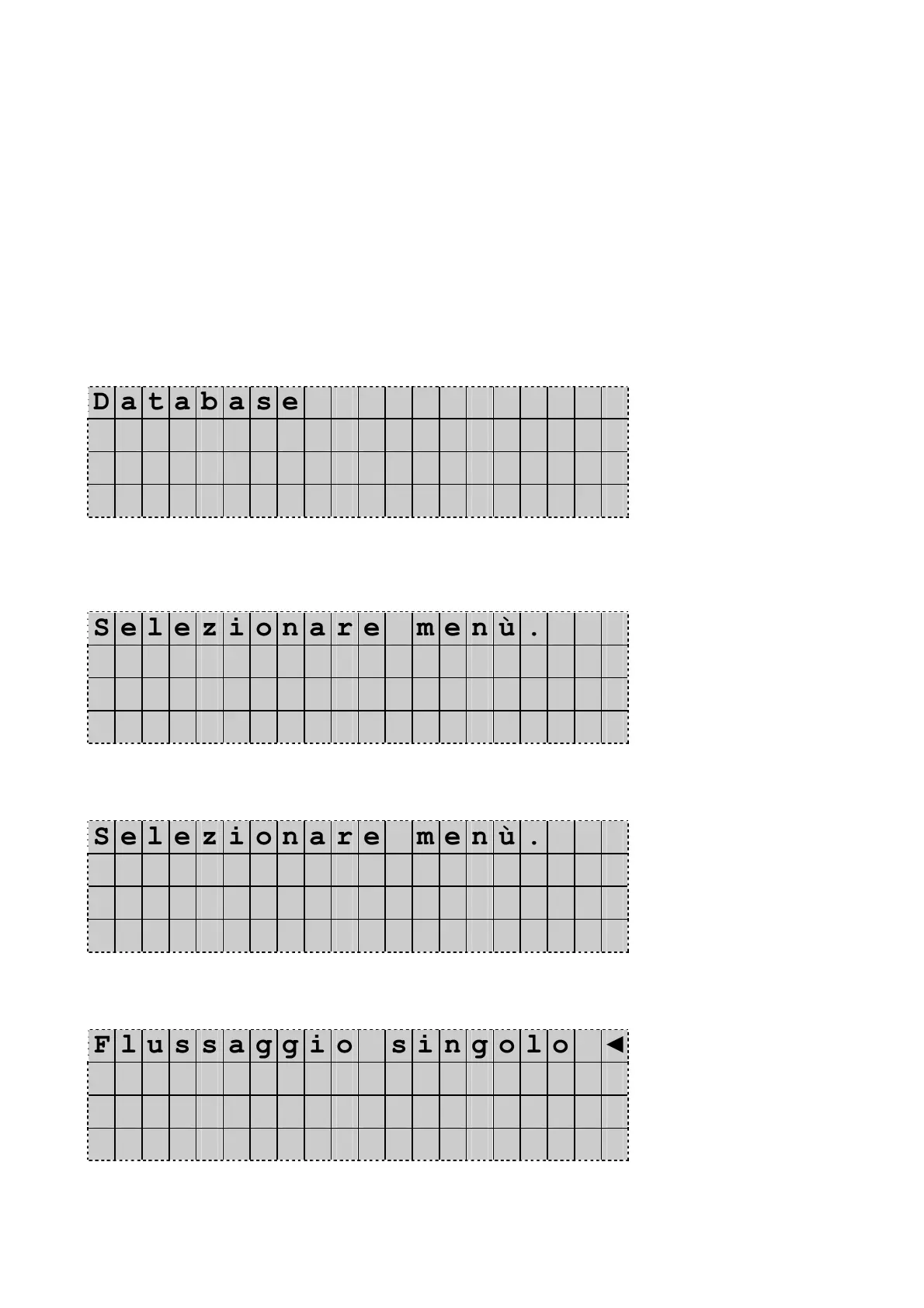 Premere UP (su) o DOWN (giù) per scorrere il display e selezionare Flushing (lavaggio).