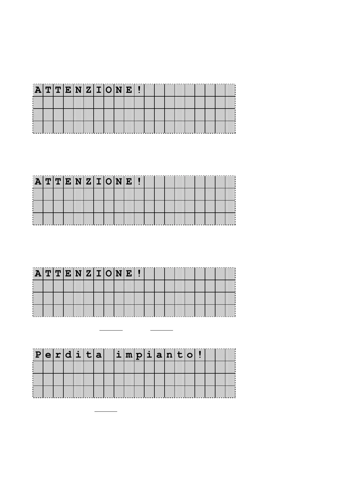 In presenza di allarme, anomalia o richiesta di manutenzione, appaiono i seguenti messaggi.
