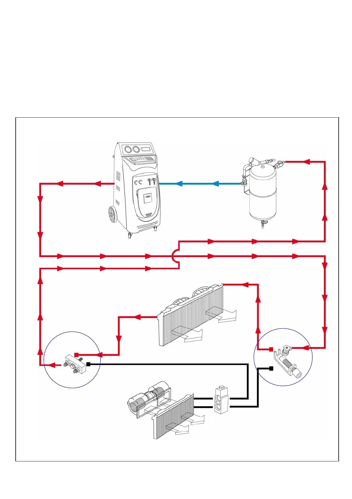 (1)Konfort red service hose with HP coupler to the receiver drier location