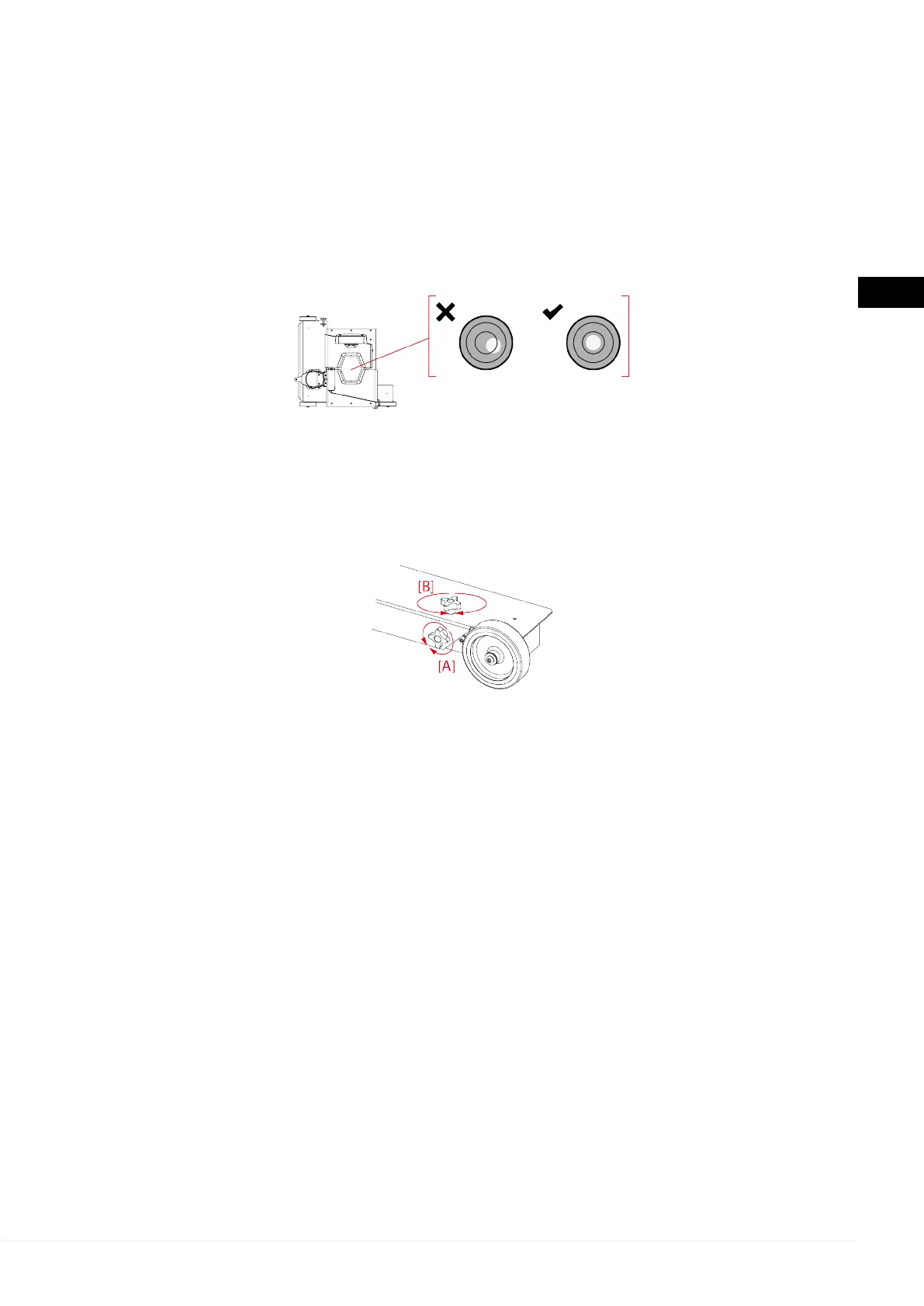 II. Ajuste a inclinação do dispositivo ao atuar nos parafusos de ajuste [B].