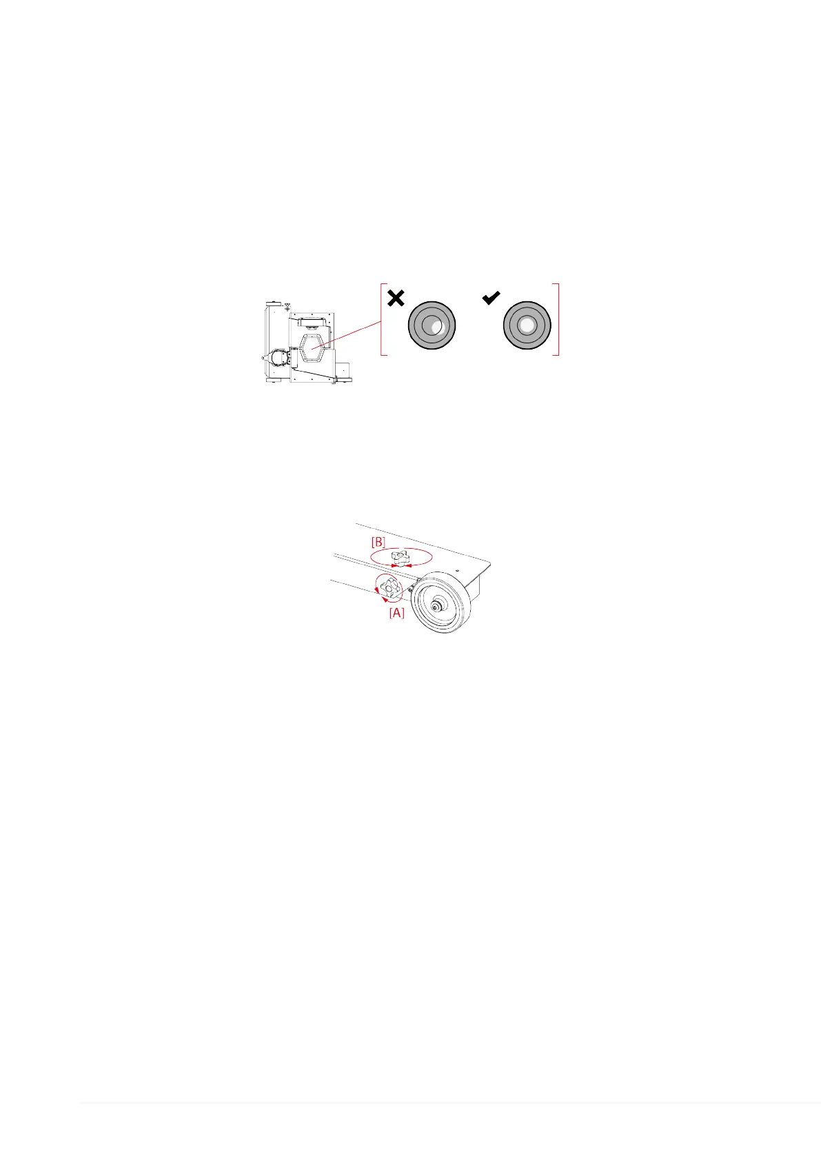 II. Wyreguluj nachylenie urządzenia działając na śruby regulacyjne [B].