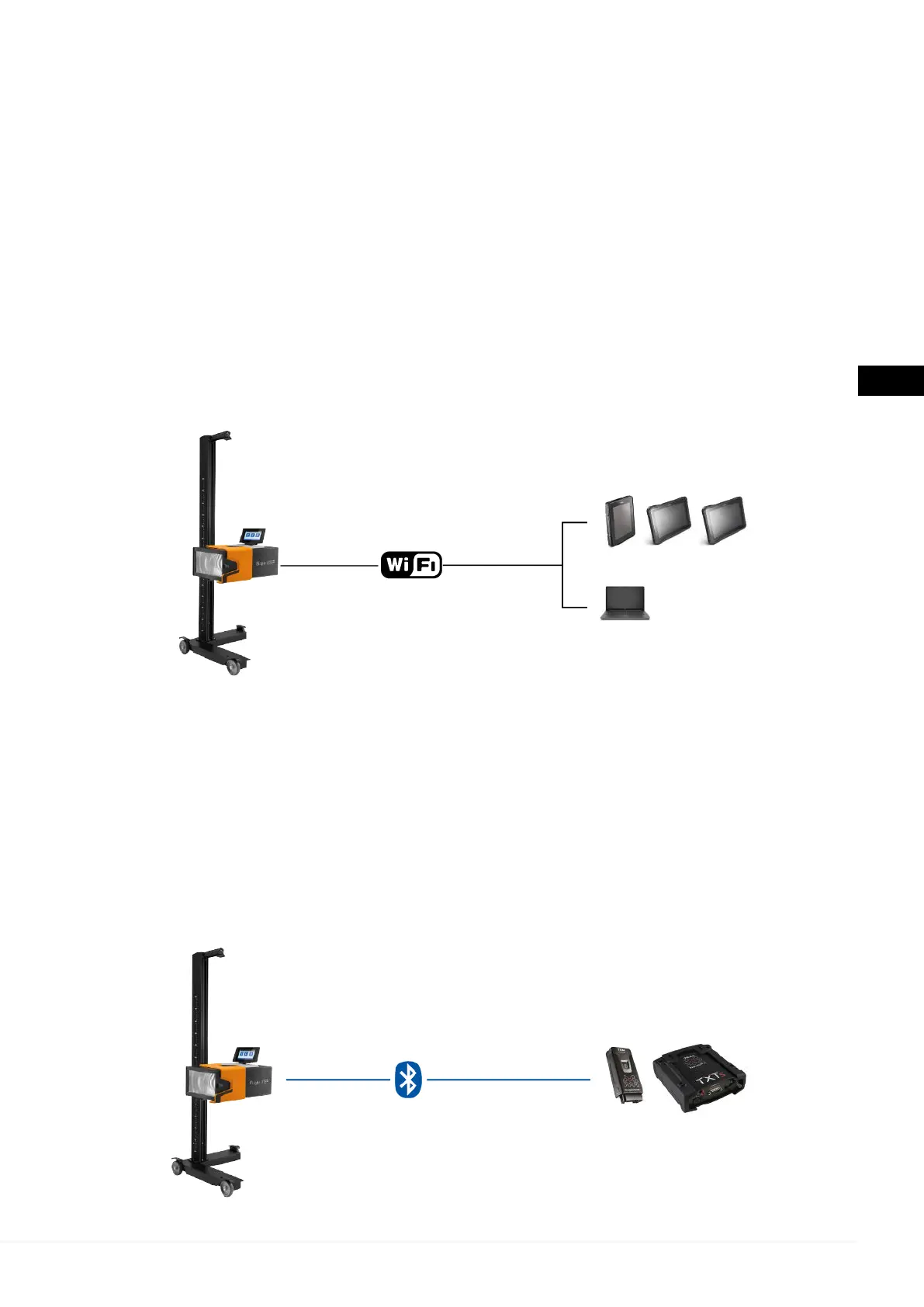 are un ecran tactil de 7" cu suport reglabil, instalat pe caseta optică.