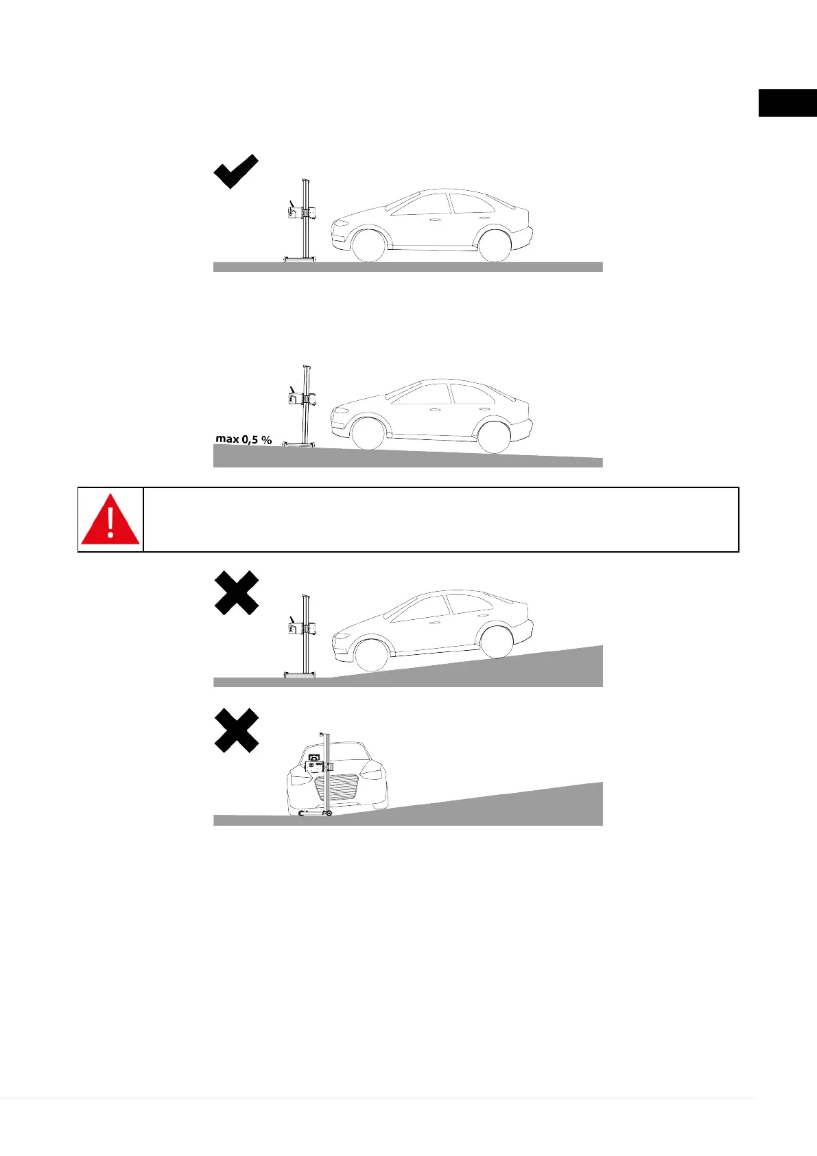 For a correct photometric analysis, the device and the vehicle must be positioned on a flat