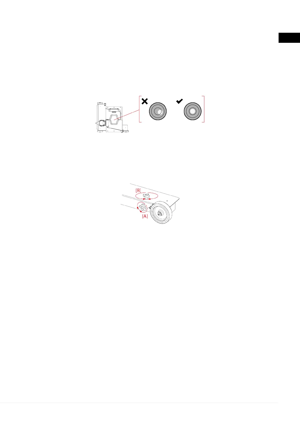 II. Adjust the inclination of the device by acting on the adjustment screws [B].