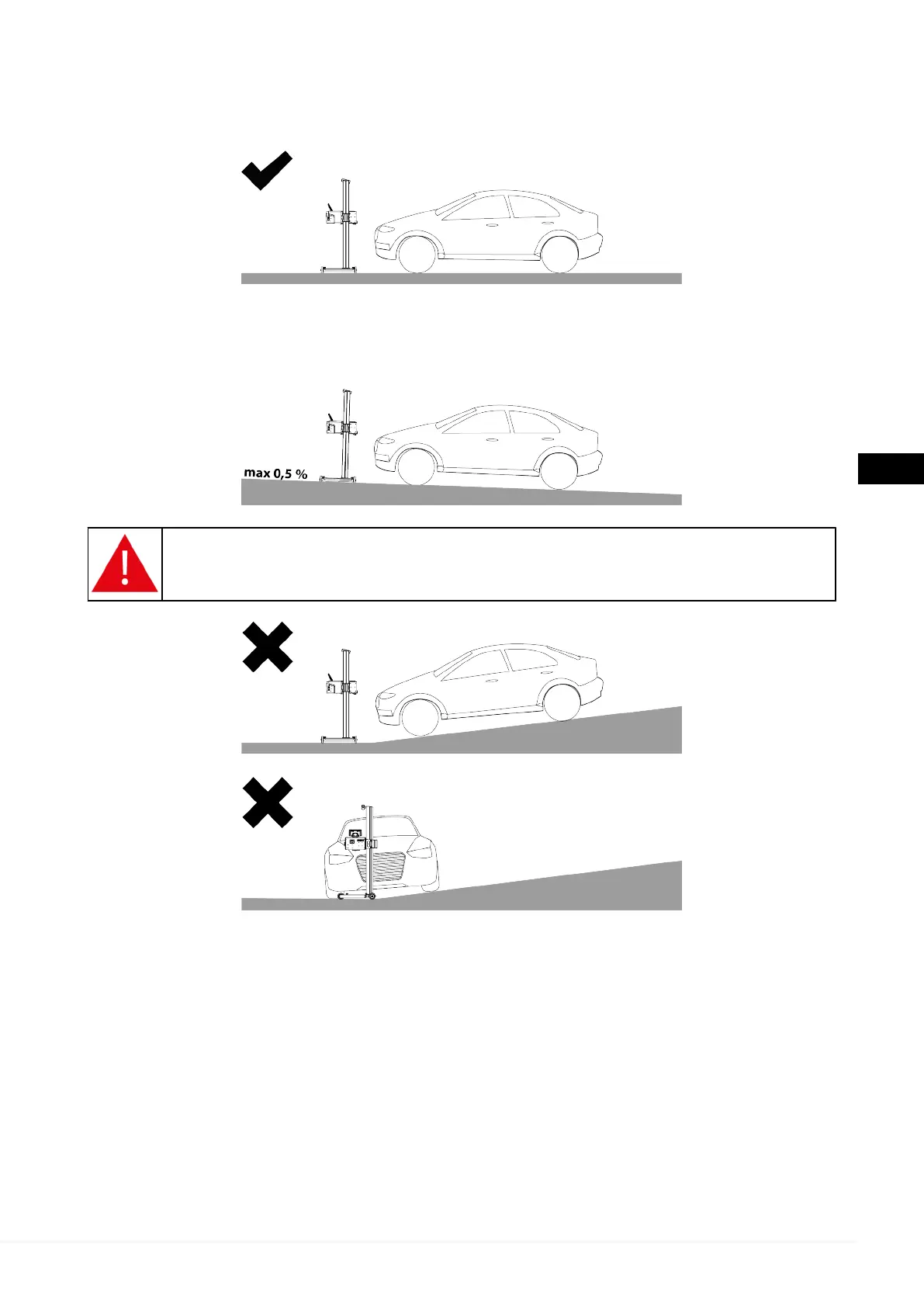 For korrekt fotometrisk analyse må enheten og kjøretøyet plasseres på en flat arbeidsflate.