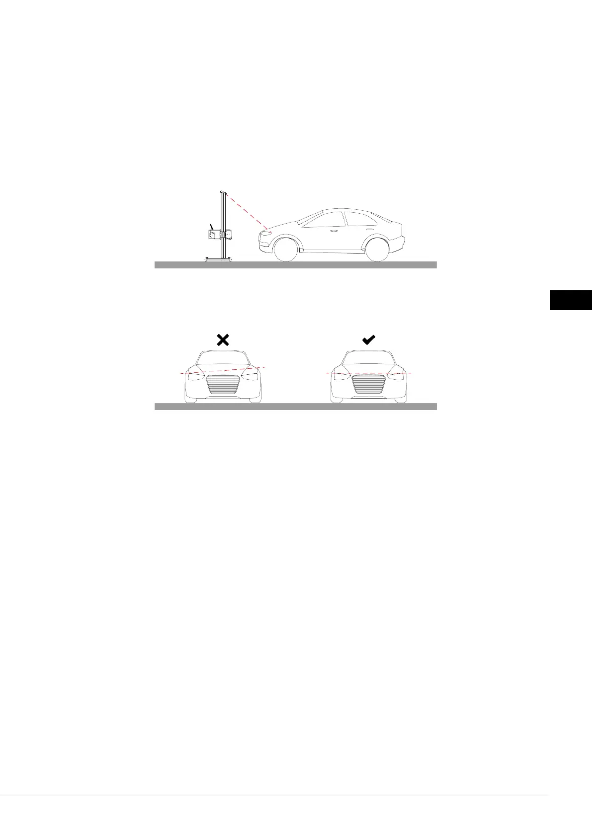 For korrekt fotometrisk analyse må enheten og kjøretøyet være riktig justert.