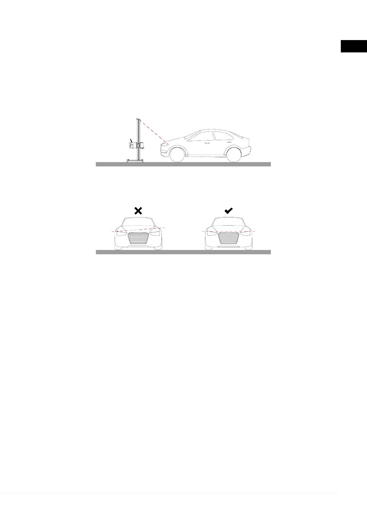 For a correct photometric analysis, the device and vehicle must be properly aligned.
