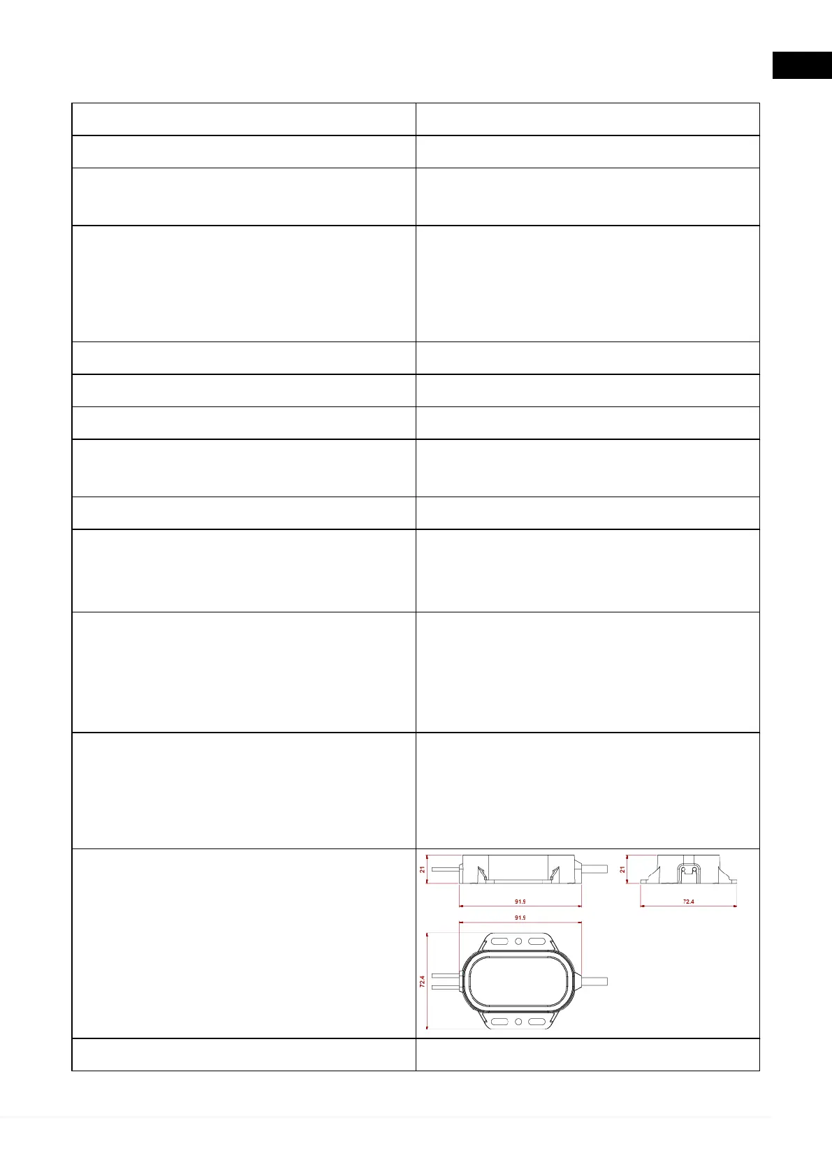 Storage and operation humidity: 10% ÷ 80 % without condensation.