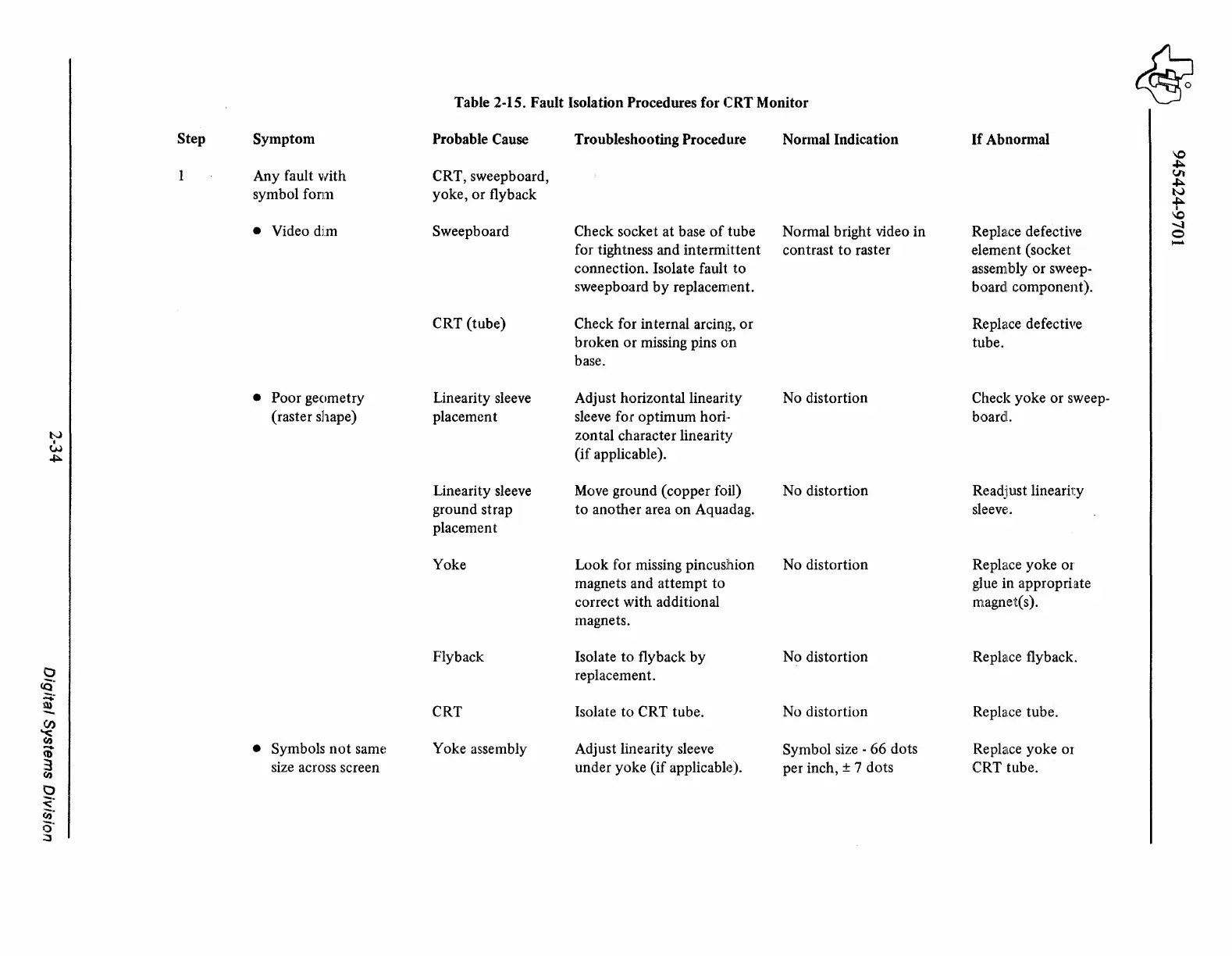 Table 2-15. Fault Isolation Procedures for CRTMonitor
