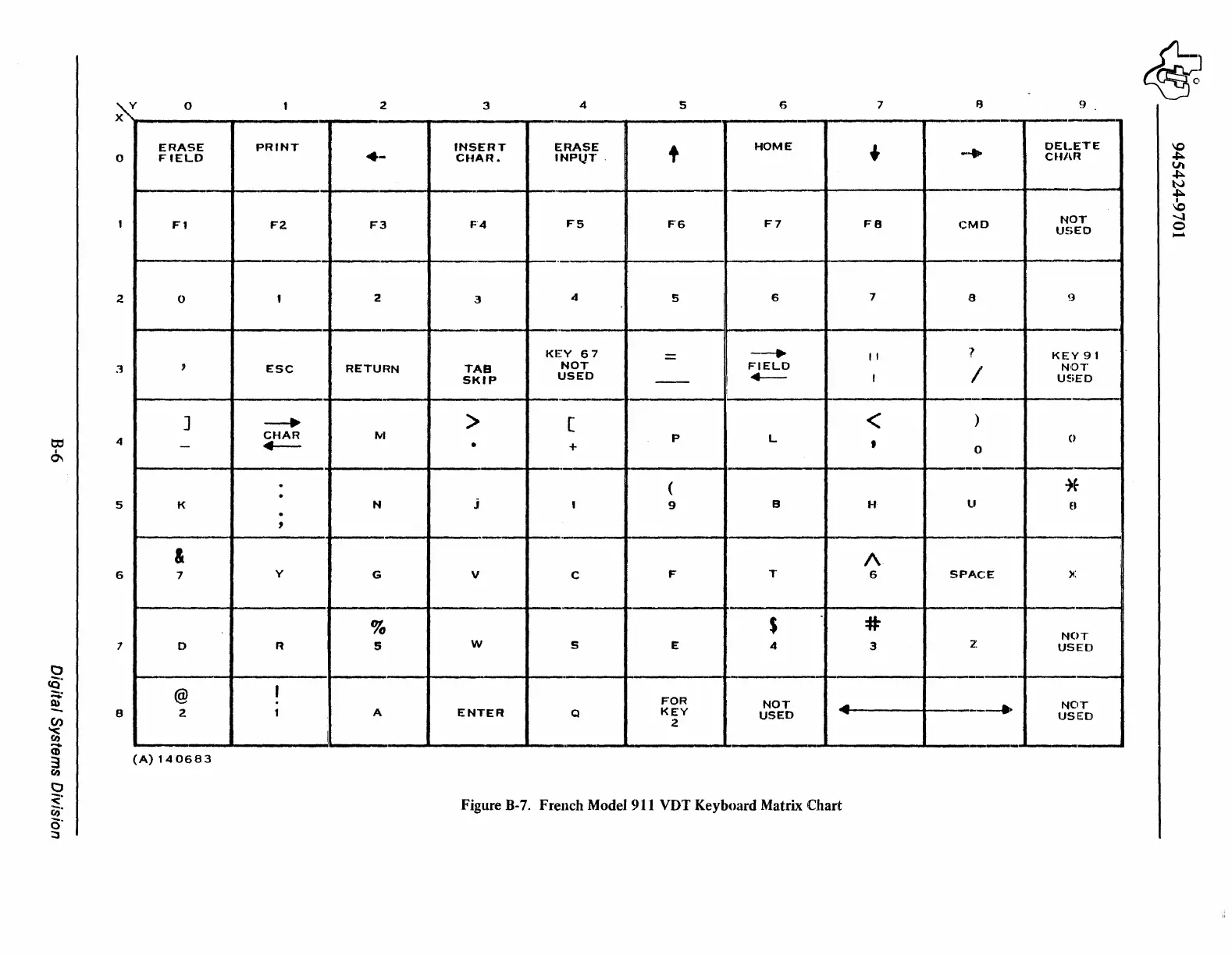 French Model 911 VDT Keyboard Matrix Chart