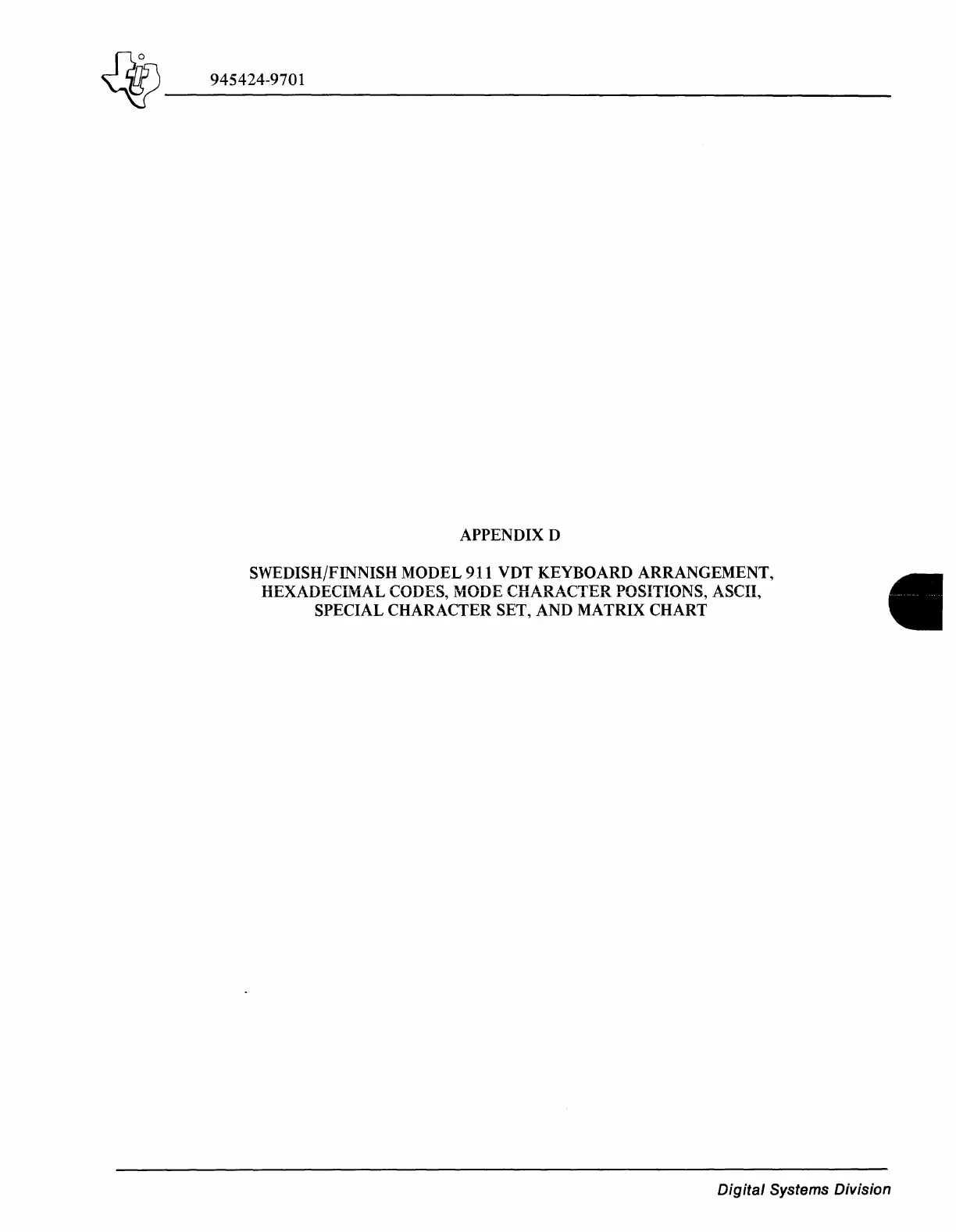 SWEDISH/FINNISH MODEL 911 VDT KEYBOARD ARRANGEMENT,