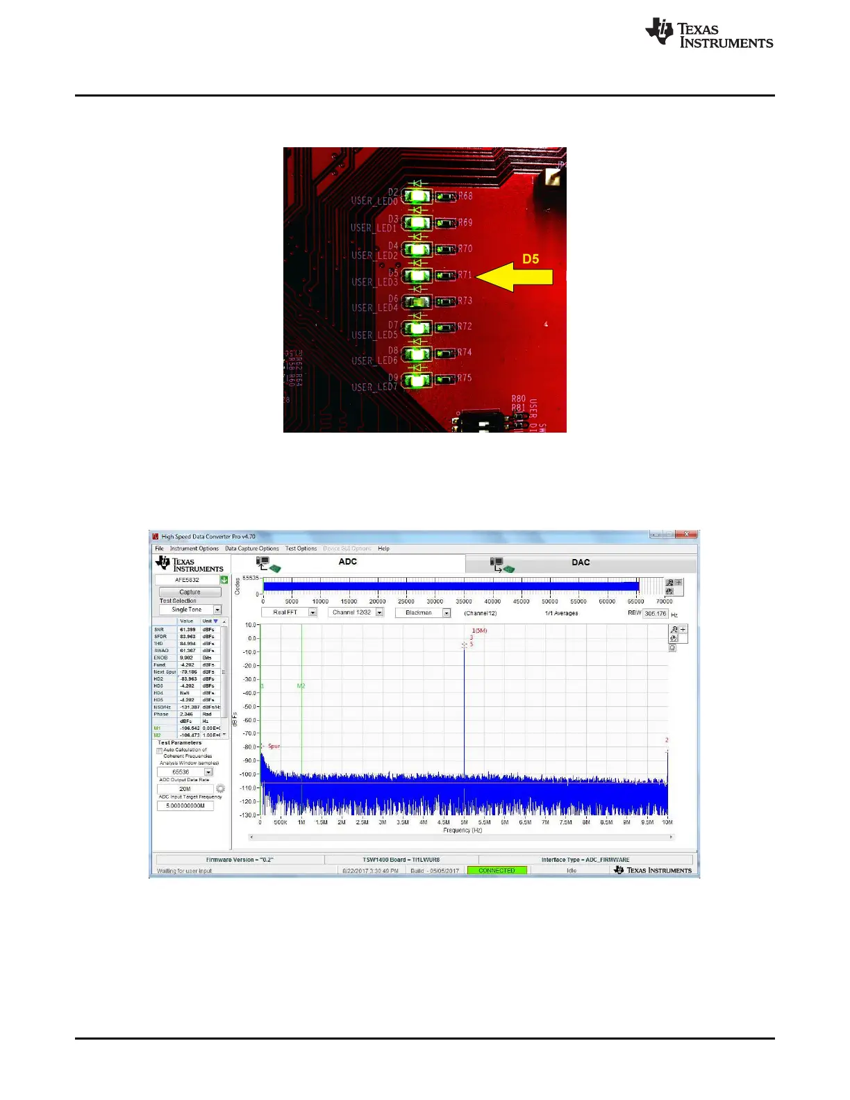 Figure 13. LED D5 on the TSW1400 EVM Turns On When ADC is Ready