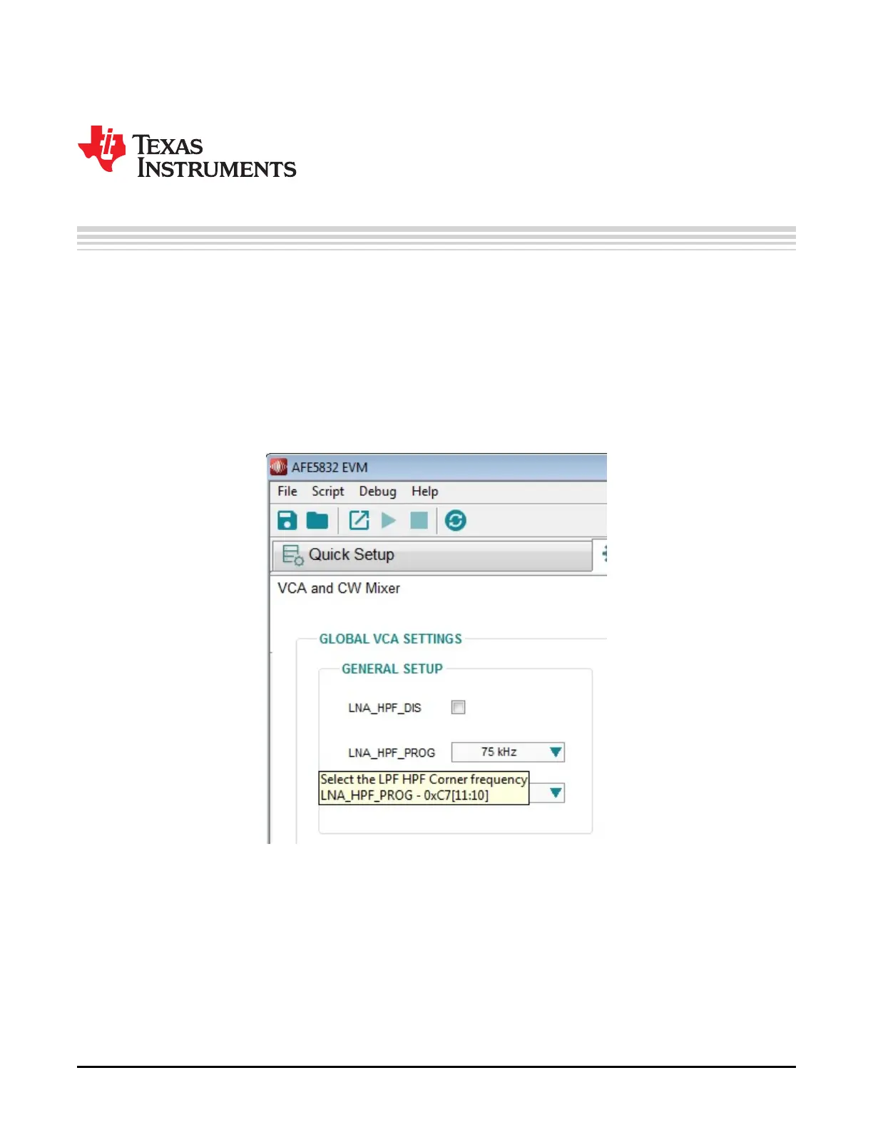 allows the user to easily configure the various functions of the AFE such as receiver gain, bandwidth