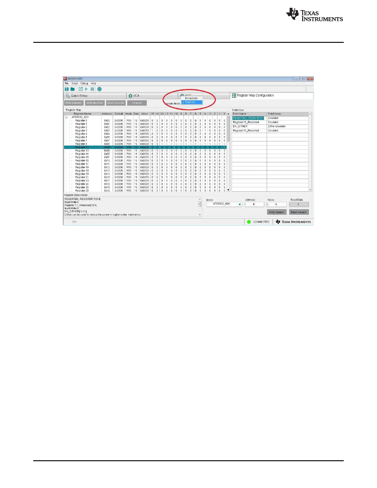 Figure 55. AFE5832: Register Map Configuration: Update Modes