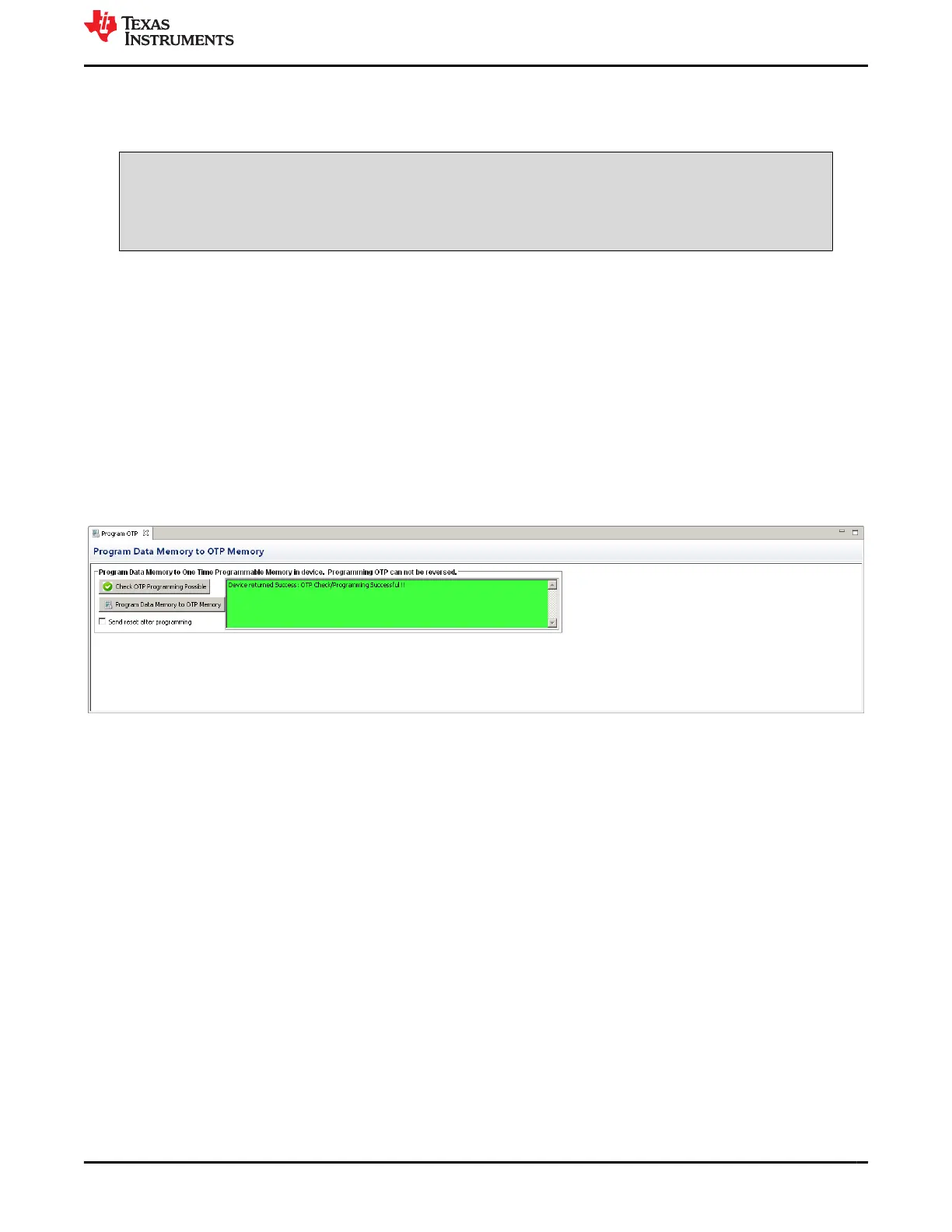 6. Select the Program Data Memory to OTP Memory button. If successful, the display is similar to the check.
