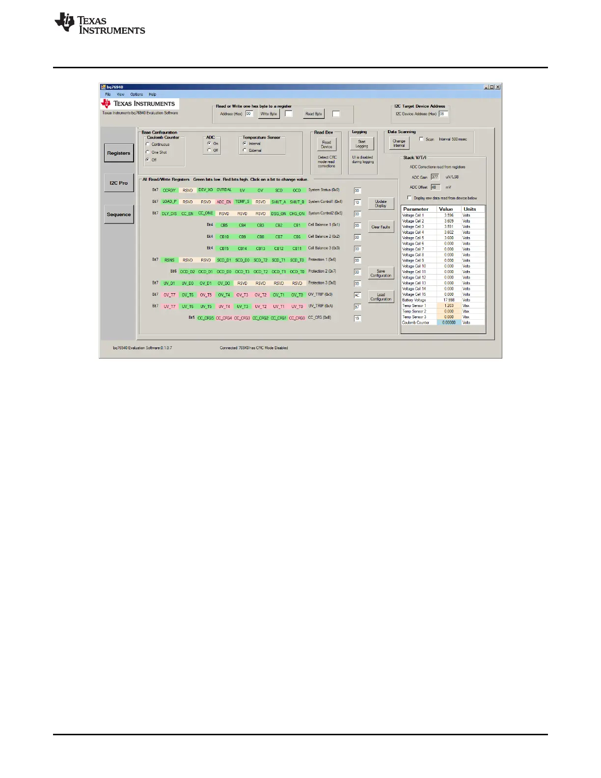 Figure 3. bq76940/bq76930/bq76920 Evaluation Software Display