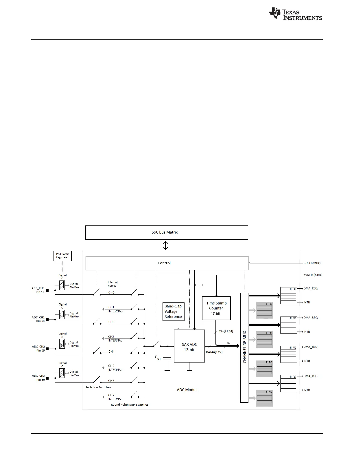 Figure 13-1 shows the architecture of the ADC module in the CC32xx.