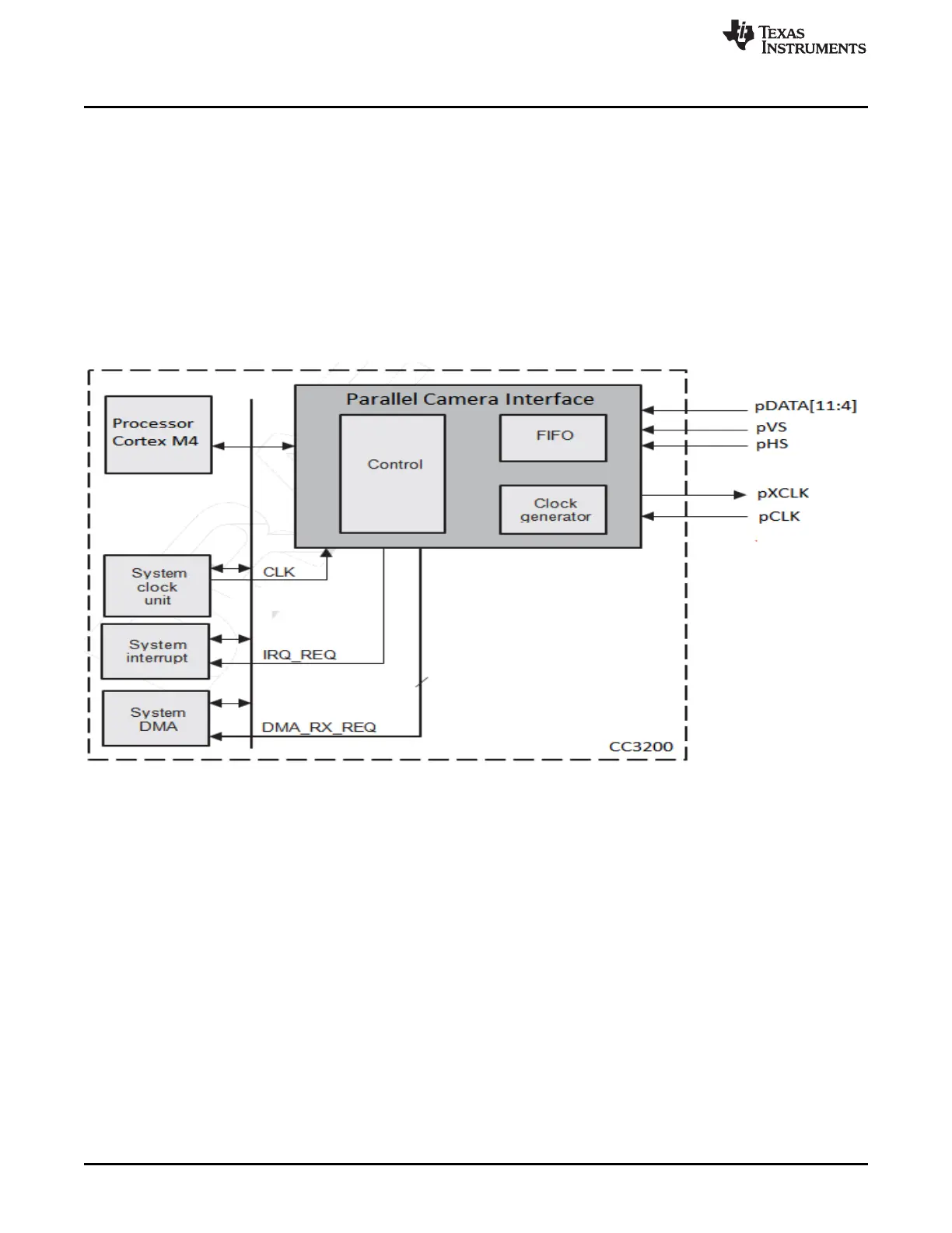 Figure 14-1 shows how the camera core is connected to the rest of the system in the CC32xx device.