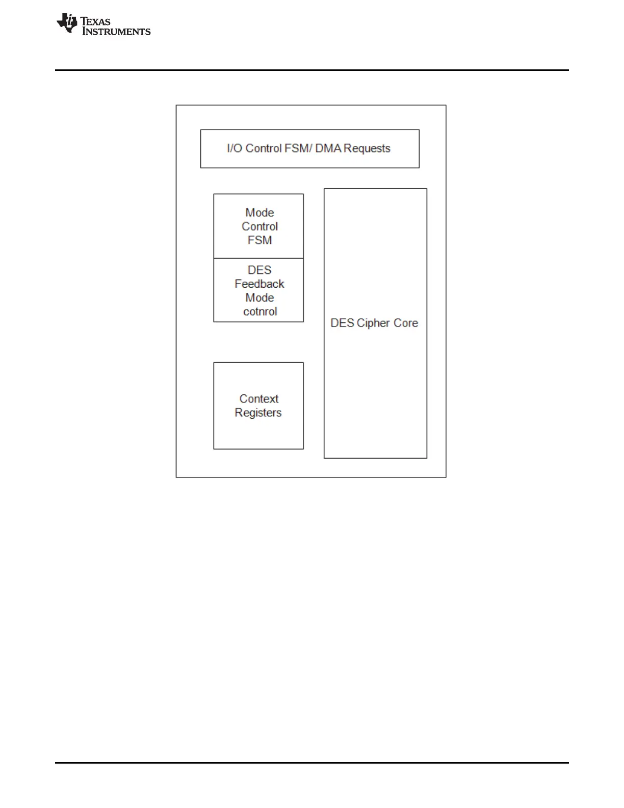 The µDMA and interrupt request logic is controlled by the DES engine. The DES engine can have multiple