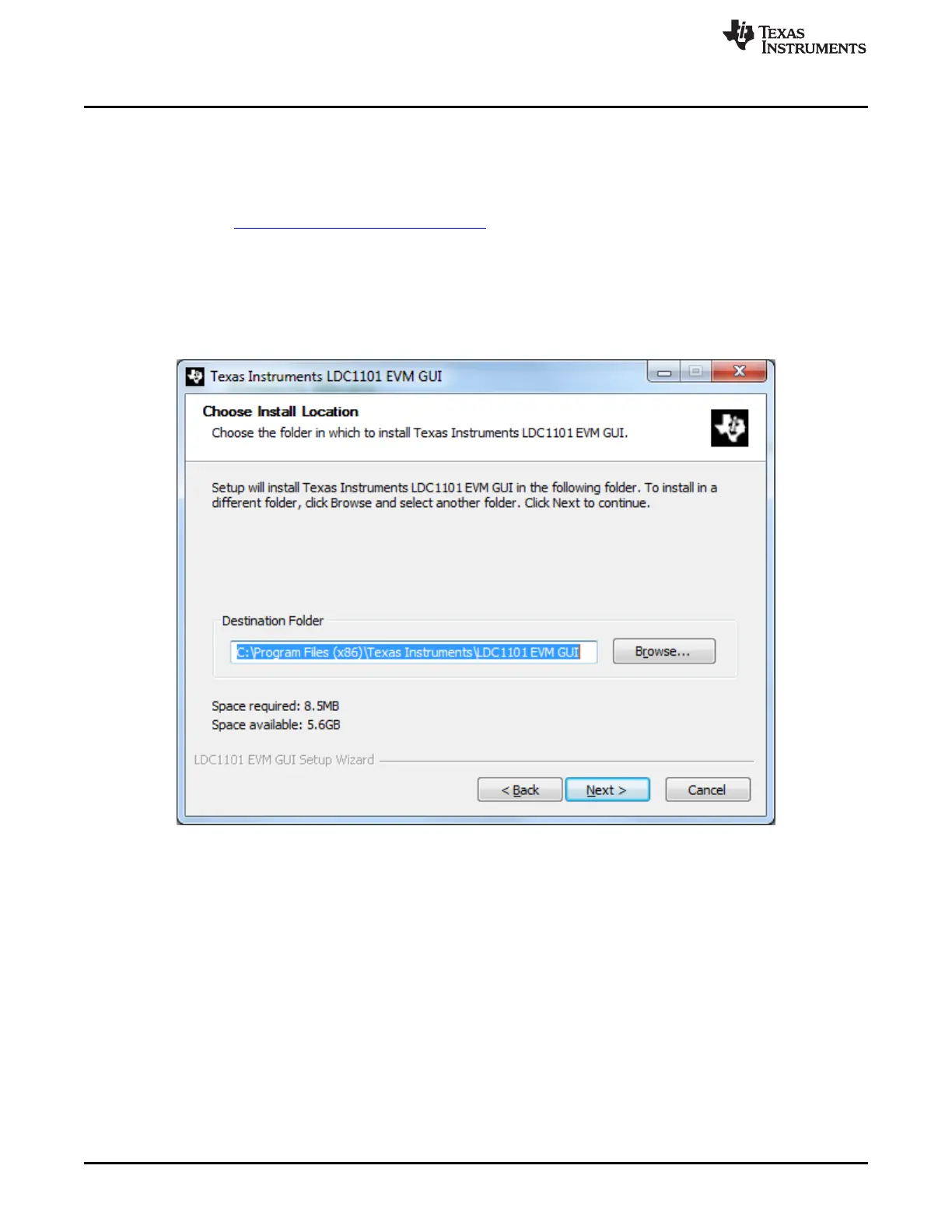 • Unzip the downloaded file and run the installer file, named “Texas Instruments LDC1101 EVM GUI