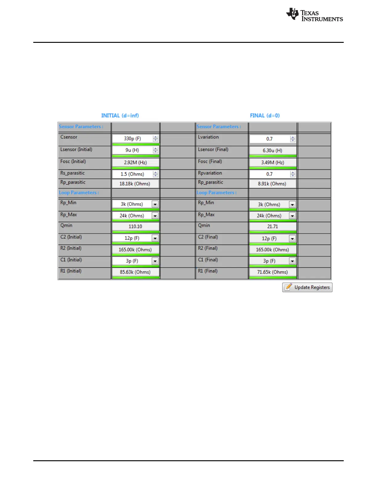 Once a setup is configured, if an LDC1101EVM is connected, press the Update Registers button to write