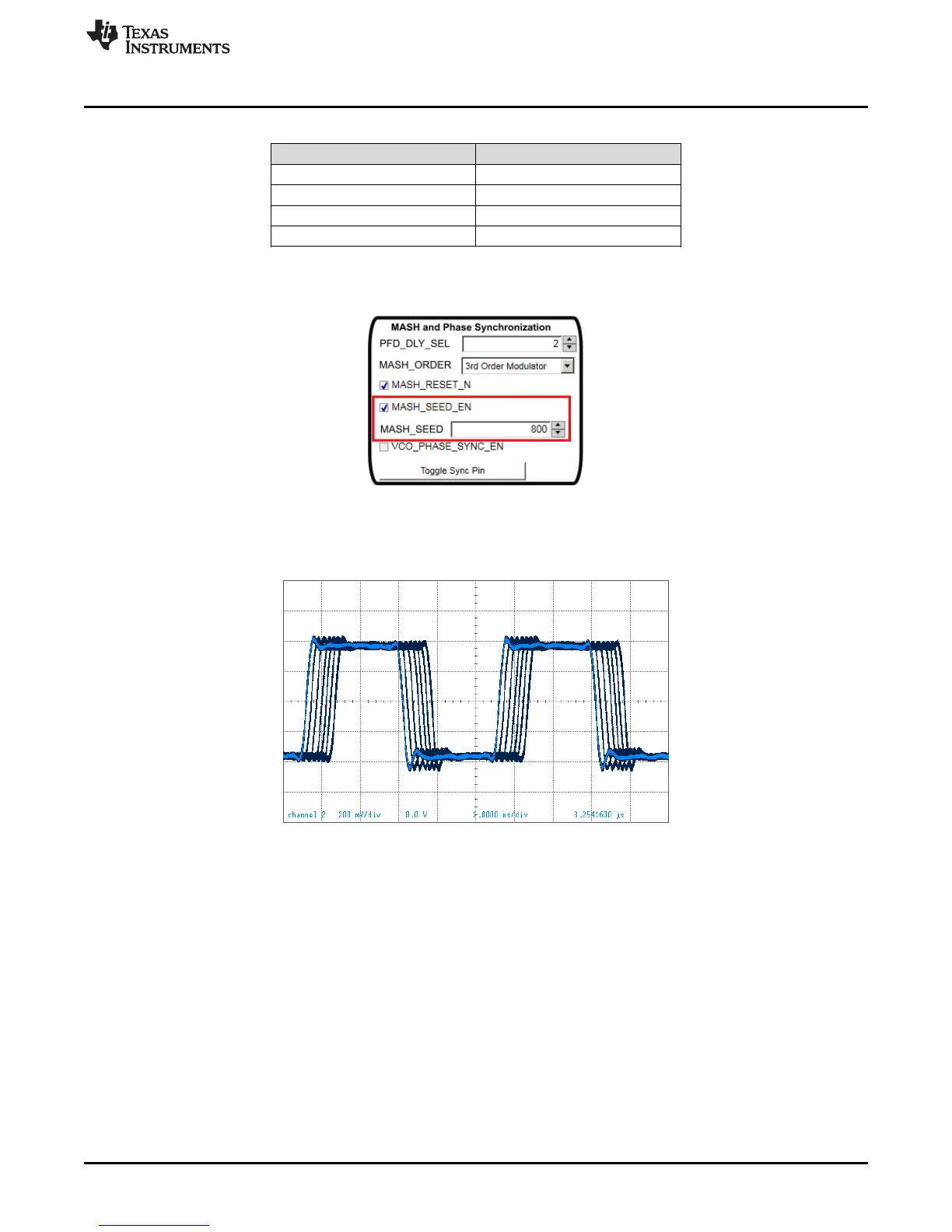 Phase shift = 360° × (800 / 1000) × (1 / 32) = 9°. We can write 800 to MASH_SEED 40 times to get 360°