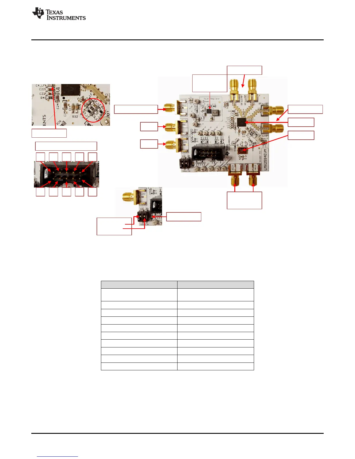 The LMX2594 is populated on a 4-layer PCB. This brief description should help you use the EVM: