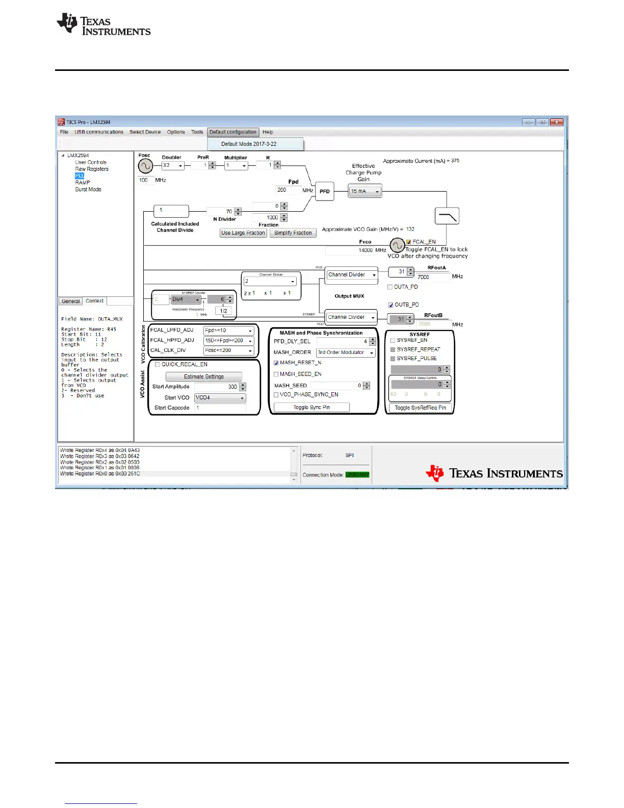 Figure 8. TICS Pro GUI LMX2594 Default Configuration