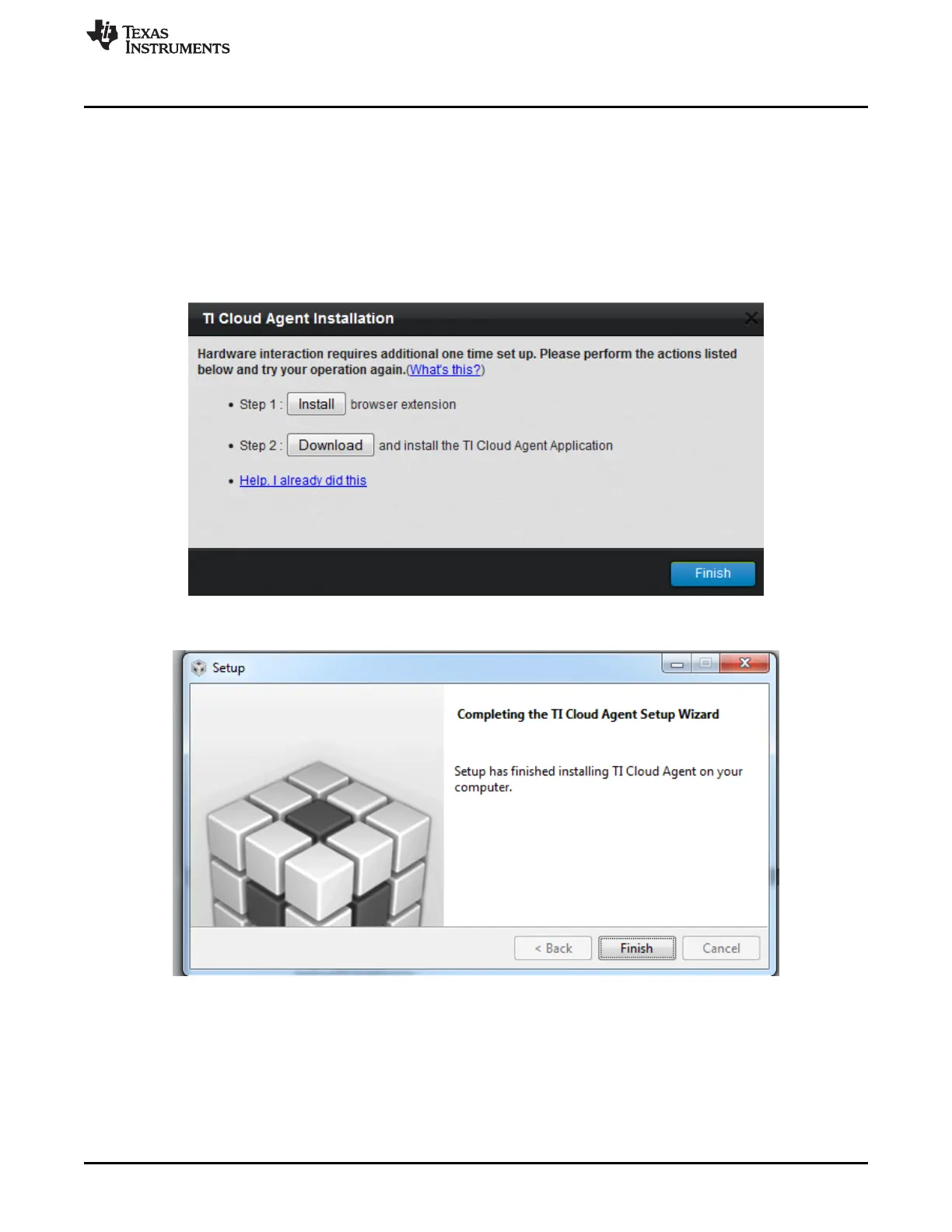 configuration, install the "CCS Cloud browser extension", and download and install the "TI Cloud Agent