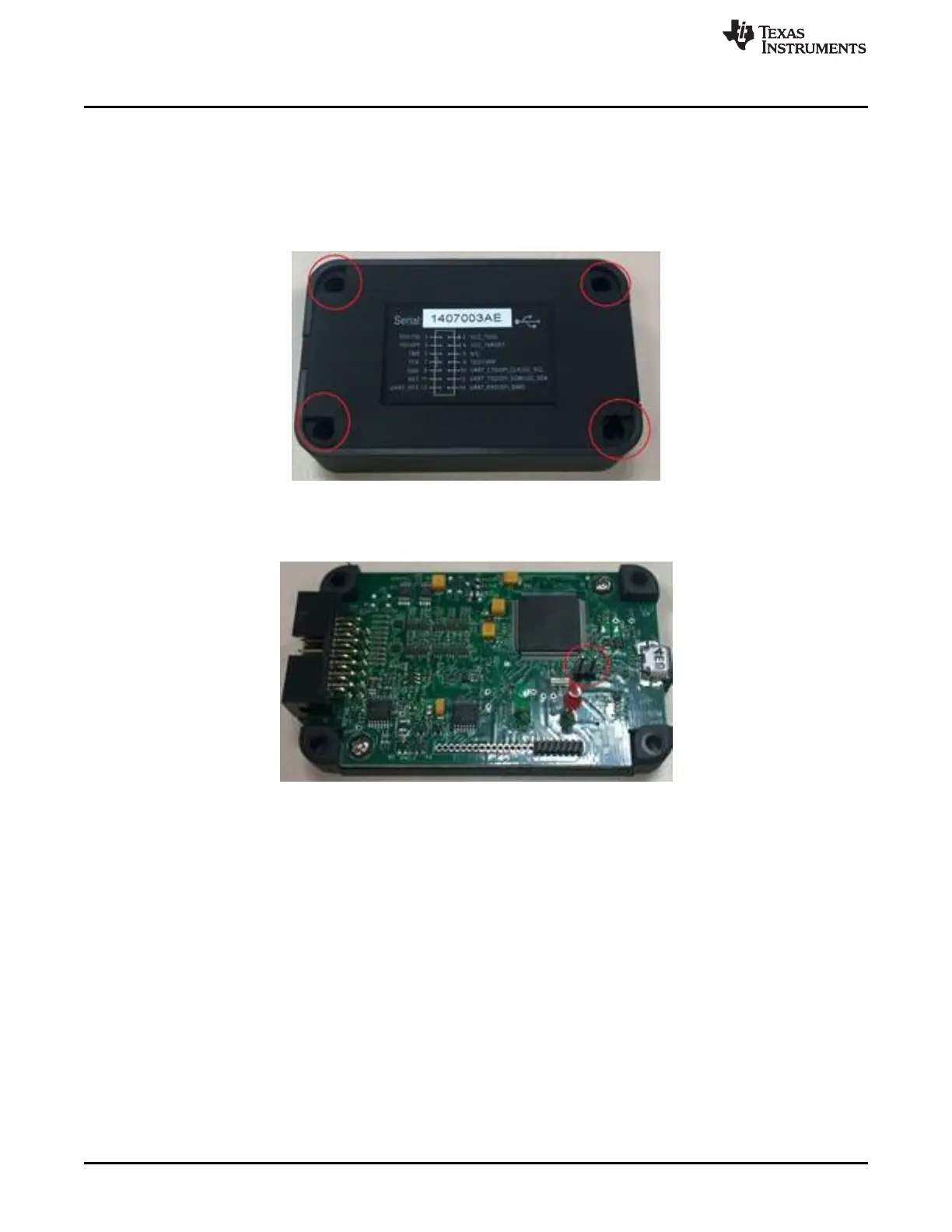 To execute this procedure, the MSP-FET cover must be opened by unscrewing the four screws on its